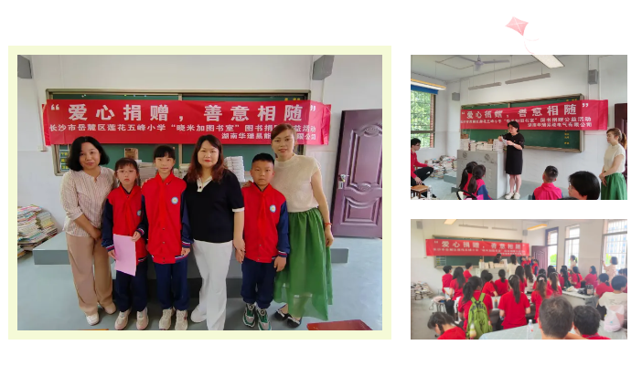 5月6日上午,在曉米加教育工作室梁曉博士的組織下,湖南華瑞易能電氣有限公司副總經(jīng)理胡銀霞及工會主席張燦輝來到長沙市岳麓區(qū)蓮花五峰小學(xué),代表華瑞易能向?qū)W校捐贈書籍。